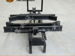 手动阻车器其任务是将运动中的矿车停止在某一要求的固定地点,和推车机、摇台、安 门等设备相互配合,使操车作业达到机械化和自动化的目的。手动阻车器按线路设置可分为前后阻车器两种。前阻车器用于待装矿车的限位,后阻车器则用于阻止列车。